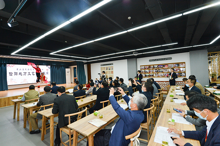 随后,在高峰、高云、王北生、郑先明等陪同下,与会领导和专家参观了信阳学院音乐厅和信阳优秀传统文化传承馆等,观看了信阳学院师生的教学成果汇报演出和非遗传承人带领学生表演的精彩节目。各位领导和嘉宾对信阳学院美丽校园和内涵建设所取得的丰硕成果给予了高度赞扬。