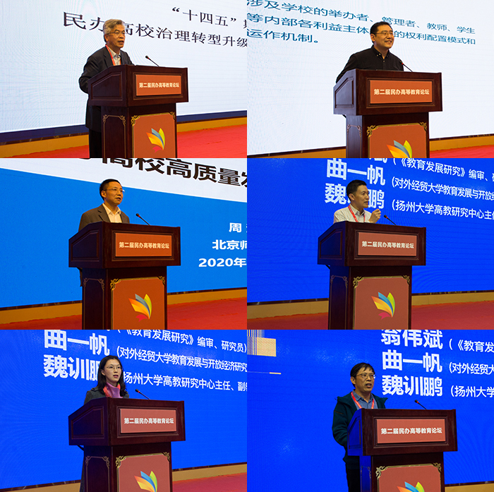 开幕式结束后,与会领导和专家围绕“民办高等教育高质量发展趋势与路径”“民办高校治理体系与治理能力现代化建设”“‘十四五’时期民办高等教育战略定位与教改探索”“新时代民办高校党的建设和德育工作创新”等主要议题,分别作主题报告和专家报告。