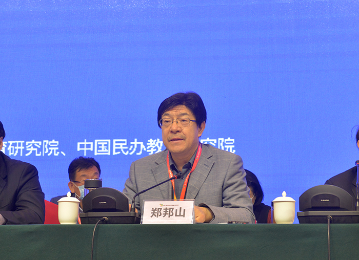 郑邦山用老家河南、忠勇河南、厚道河南、奋斗河南、红色河南、大美河南、出彩河南等“七个河南”,向与会嘉宾介绍了历史悠久、人文荟萃、英雄辈出的河南基本情况。他指出,河南省委省政府始终高度重视和大力支持社会力量办教育,专门出台了《关于加快推进民办教育发展的意见》等文件,鼓励、支持、引导、规范民办教育事业健康发展。河南省民办高校始终坚持把“四个服务”作为学校的历史使命,涌现出了黄河科技学院、信阳学院等一批优秀民办高校。刚刚闭幕的十九届五中全会,对2035年的目标、对“十四五”时期经济社会发展做出了系统谋划和战略部署,明确提出要以推动高质量发展为主题,以深化供给侧结构性改革为主线,建设高质量教育体系,这些都对教育改革发展提出了新的更高的要求,也提供了难得的历史机遇。今天,中国民办高等教育论坛再次在信阳举办,专家学者云集,聚焦新时代民办高等教育发展主题,总结交流民办高校改革发展经验,谋划未来民办高等教育改革发展战略。相信这次盛会必将为办好人民满意教育、加快推进教育现代化、建设教育强国凝聚起强大智慧和力量。